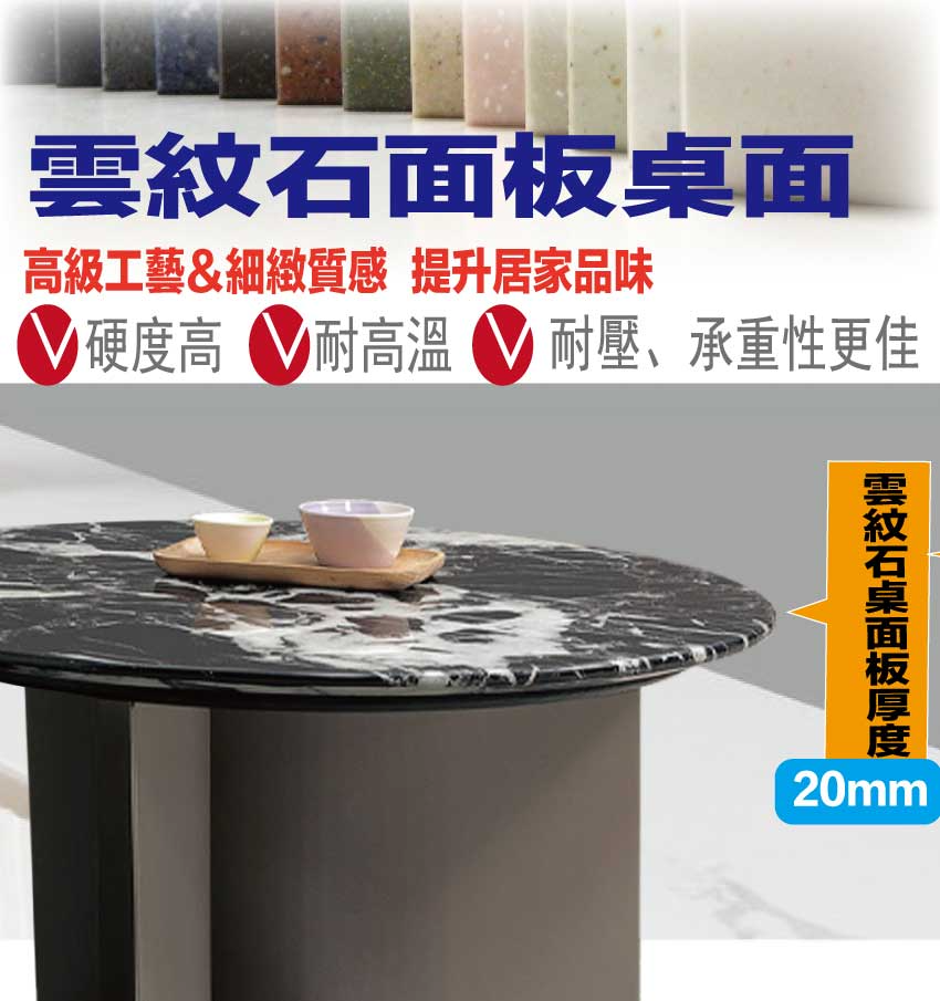 採用烤漆五金底座+20mm雲紋石面桌面板等安心材質製造