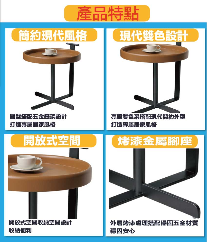 - ◆產品名稱:【綠家居】華格森1.3尺圓盤鐵架小茶几