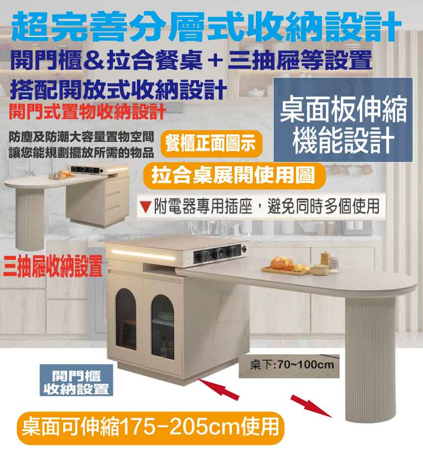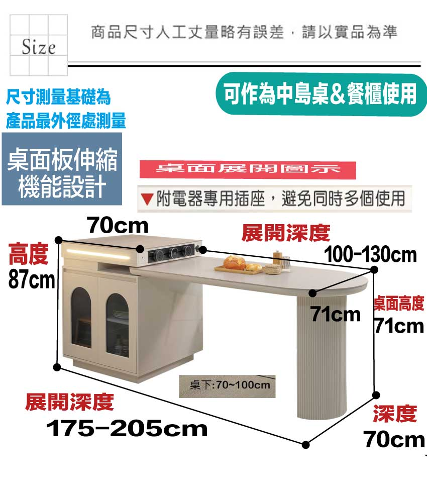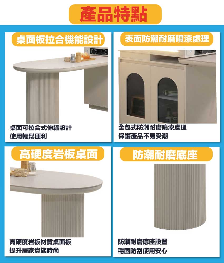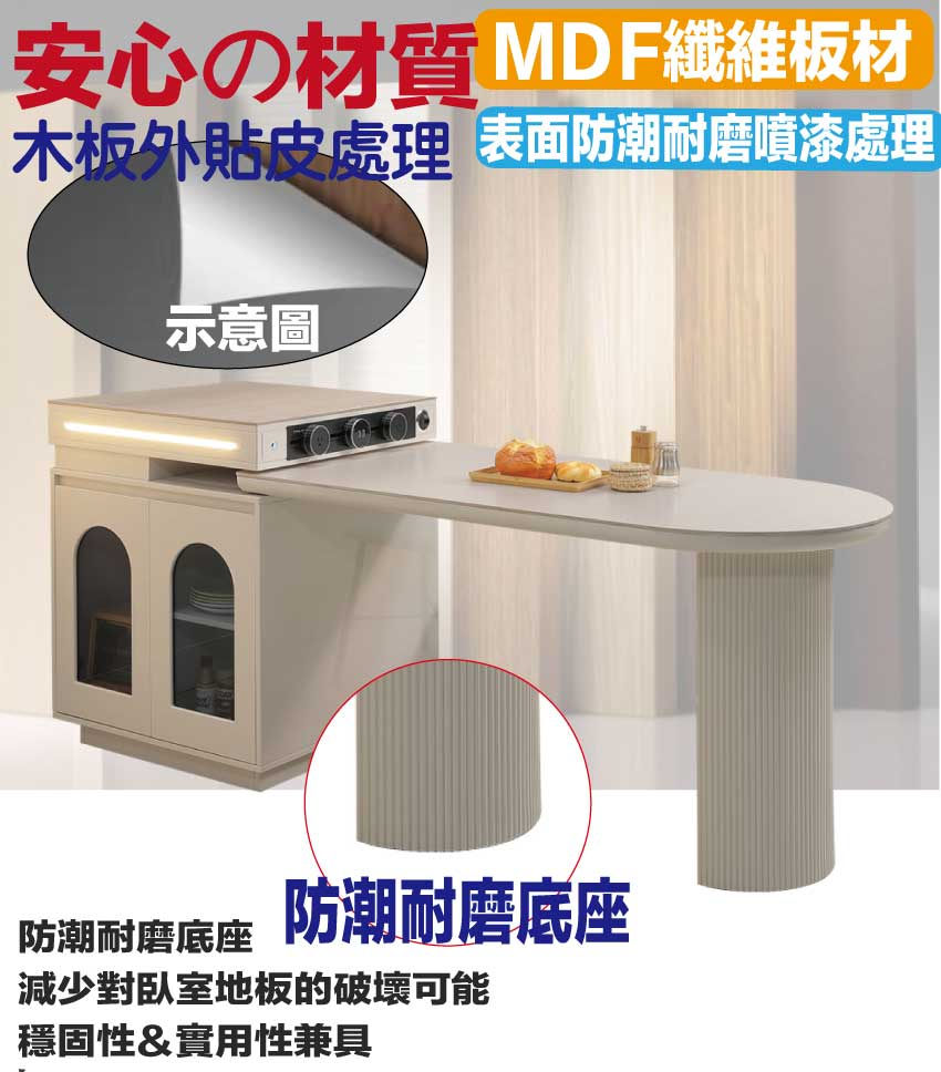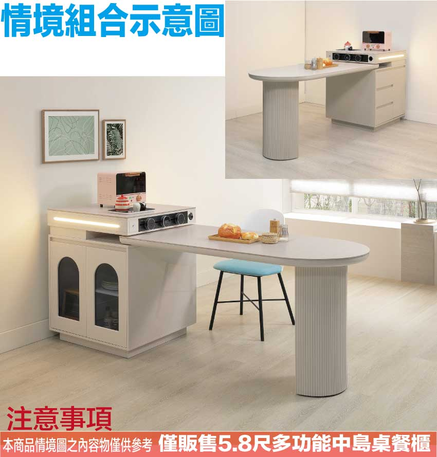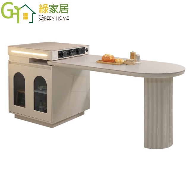 - ◆產品名稱:【綠家居】亞利5.8尺岩板可伸縮中島餐桌櫃