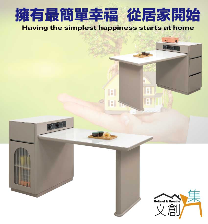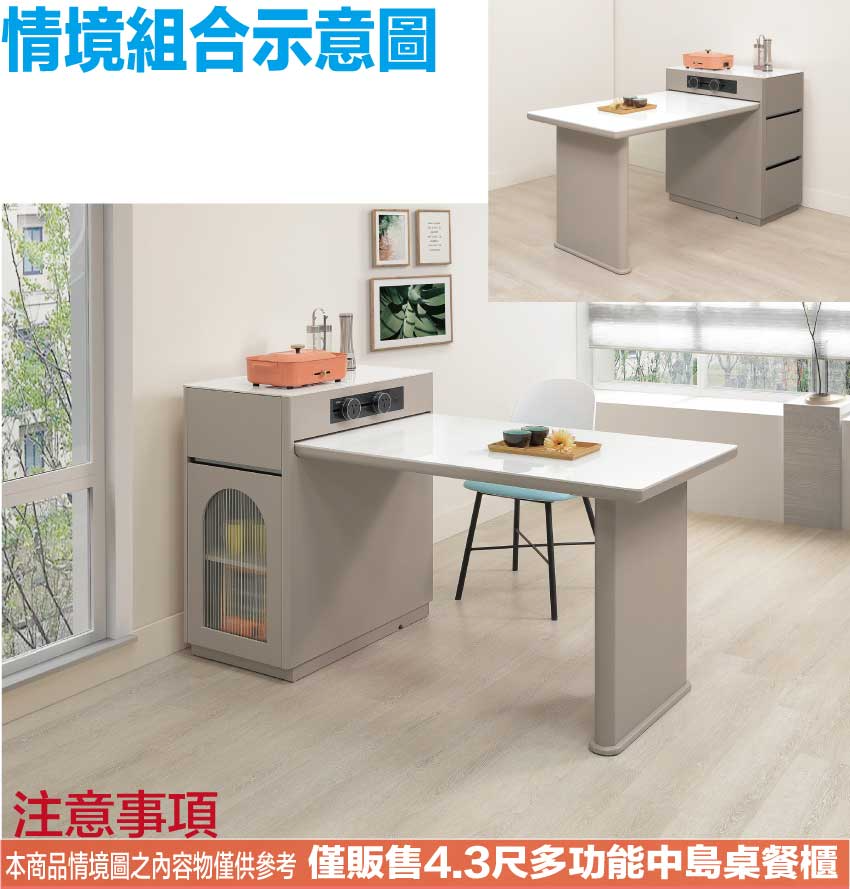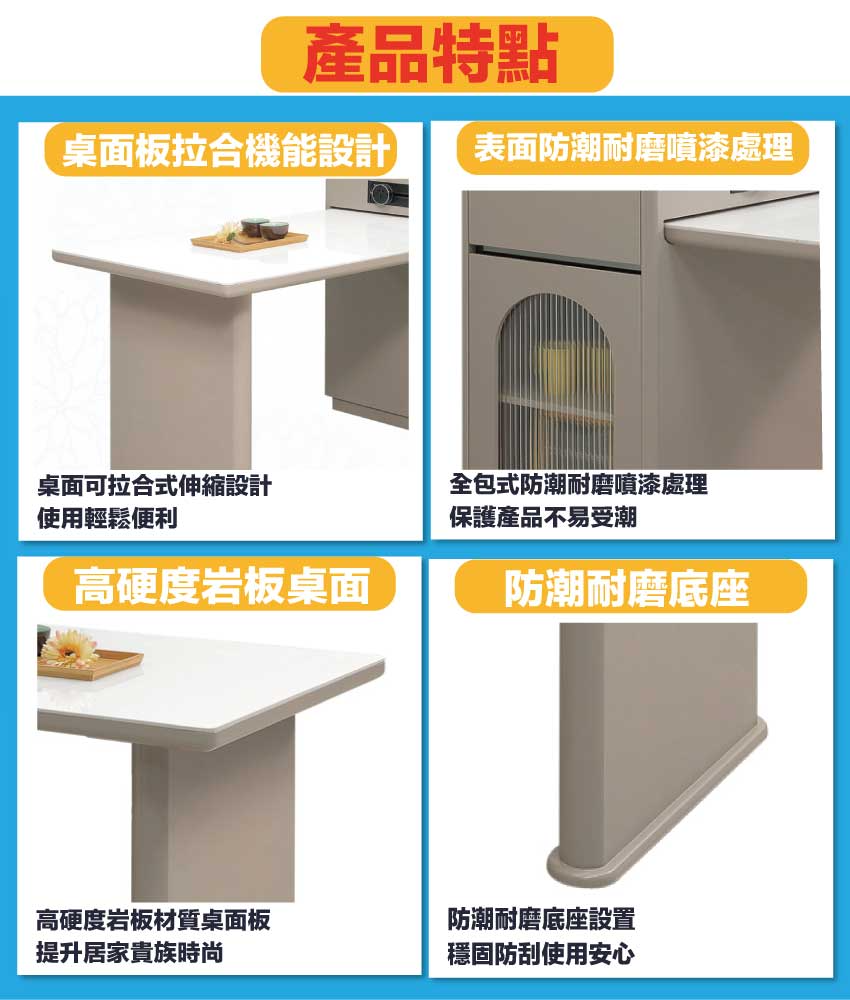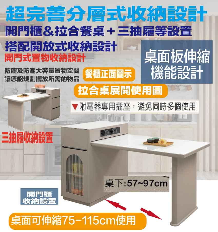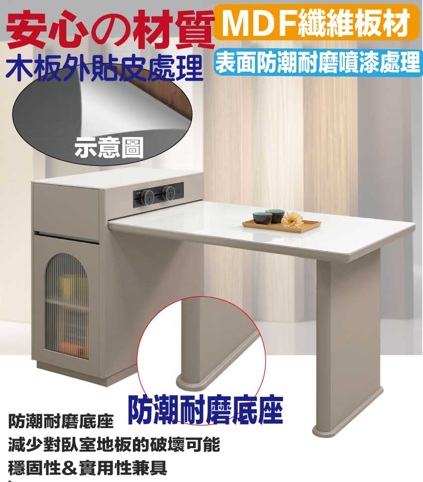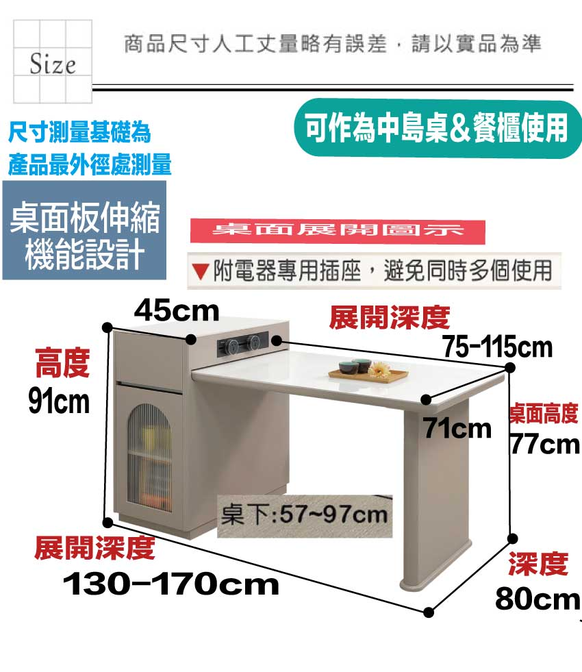 - ◆產品名稱:【綠家居】德爾4.3尺岩板可伸縮中島餐桌櫃