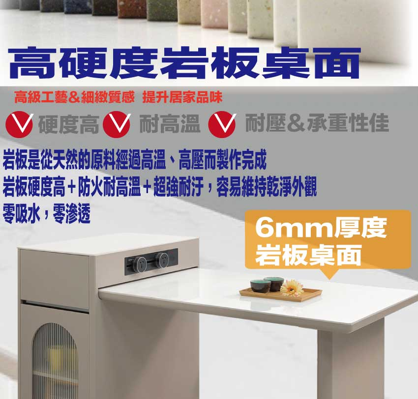 採用防潮MDF板+防潮耐磨底座+五金滑軌結構+6mm高硬度岩板等安心材質製造