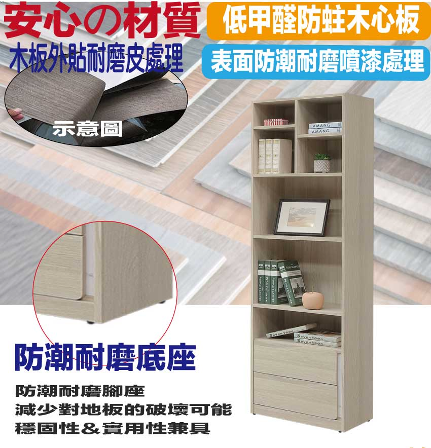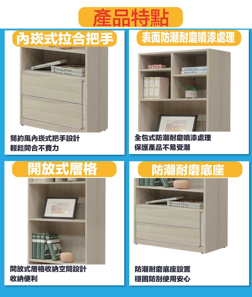 【綠家居】安卡蘭2尺二抽開放式書櫃 木紋雙色系+安心材質製造,使用放心+搭配居家更便利,採用防蛀木心板+防潮耐磨底座+仿大理石紋美耐皿材質桌面板+五金滑軌結構等安心材質製造 ,外層採用防潮耐磨噴漆處理搭配採用二抽屜+開放層格等收納空間設計,全由專人配送到家,專業安心服務,替你省下更多時間!