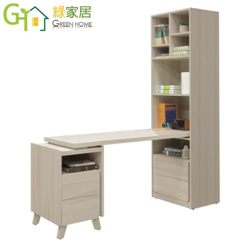 - ◆產品名稱:【綠家居】安卡蘭5尺可伸縮四抽書桌&書櫃組合