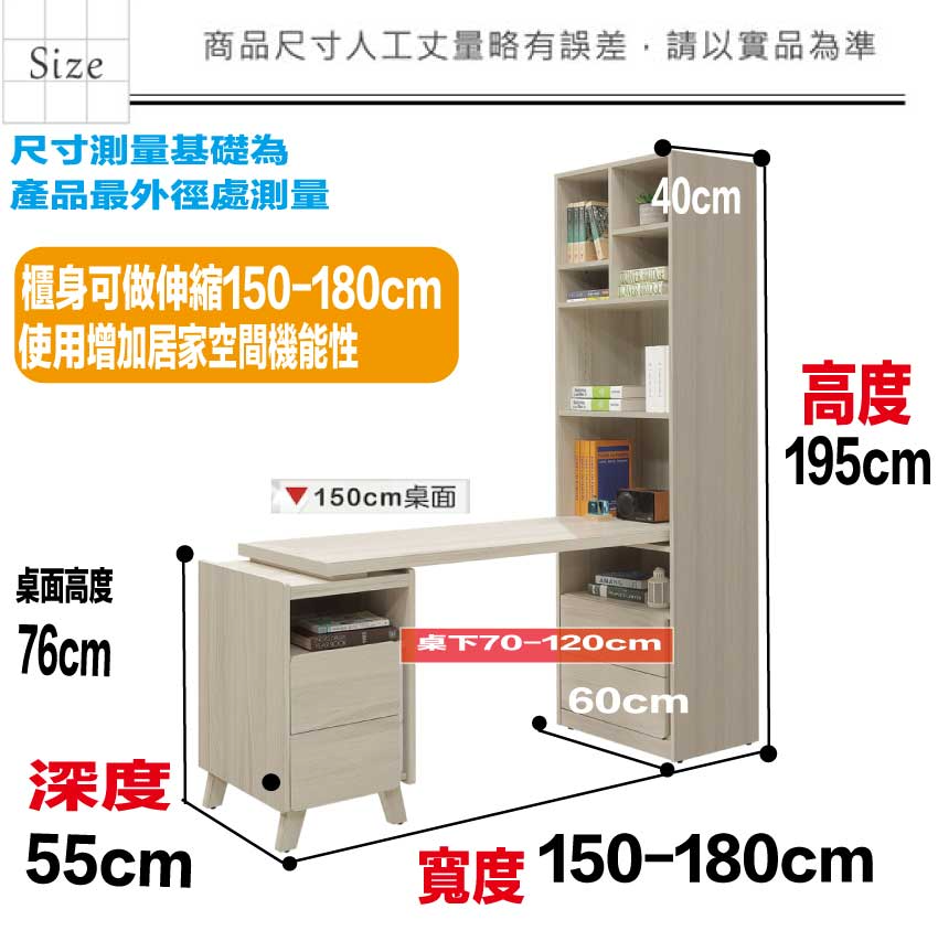 - ◆產品名稱:【綠家居】安卡蘭4尺可伸縮二抽書桌&書櫃組合