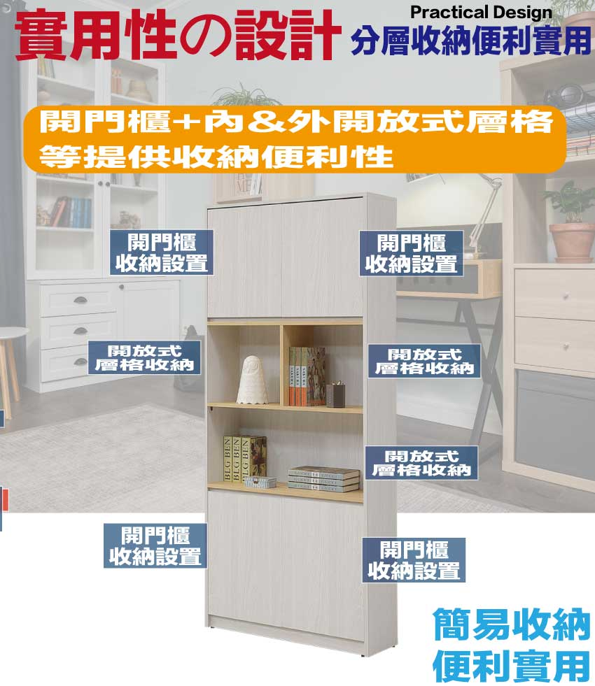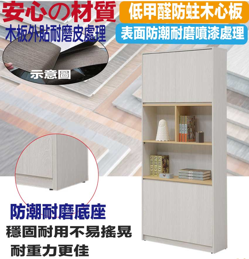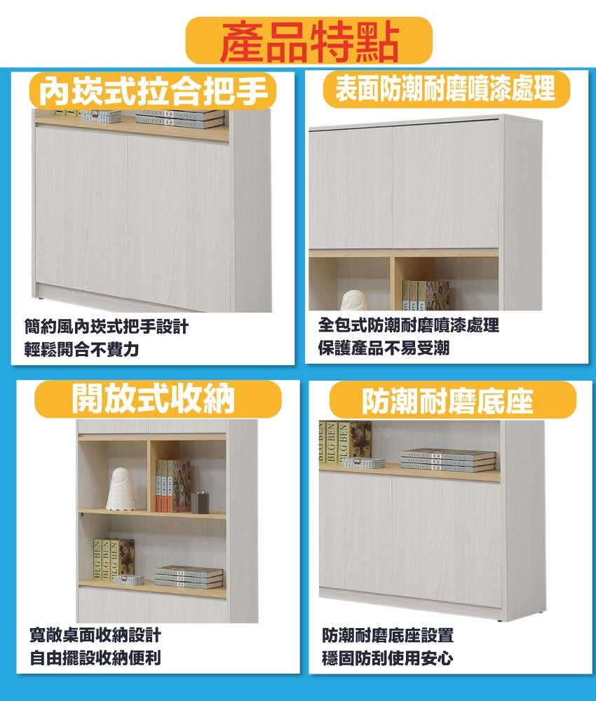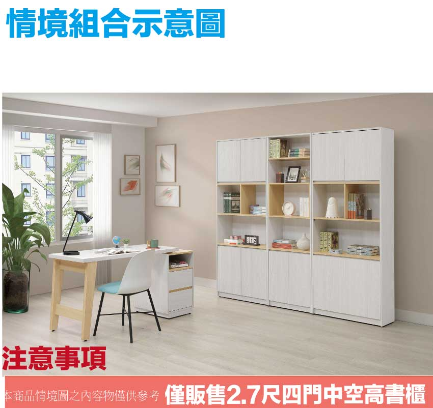 - ◆產品名稱:【綠家居】安卡蘭2.7尺四門中空書櫃