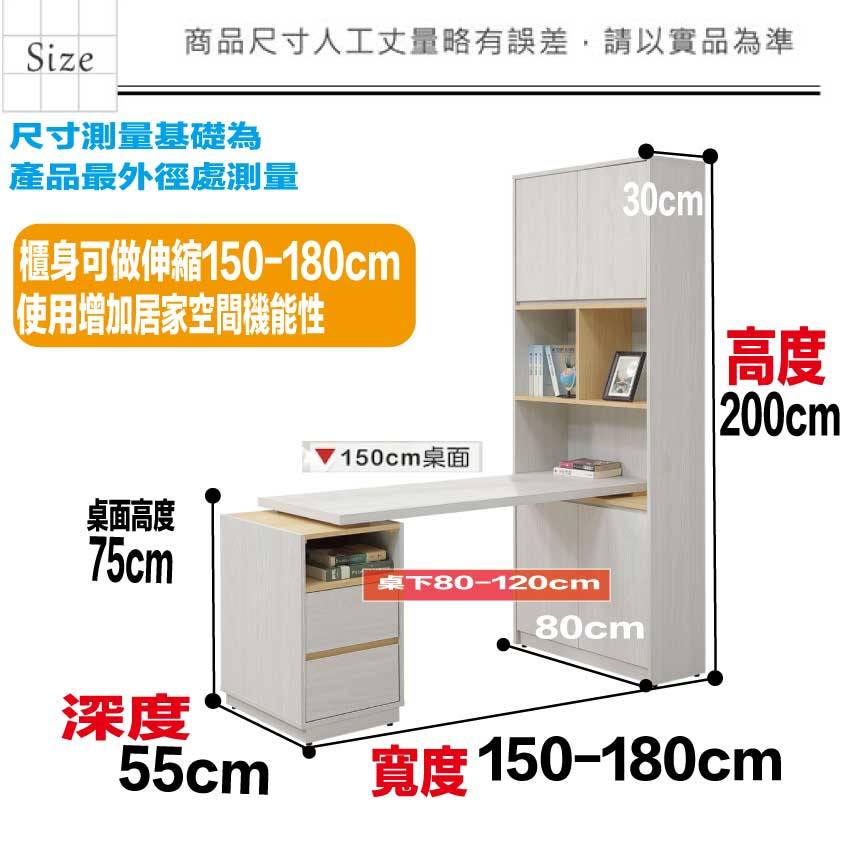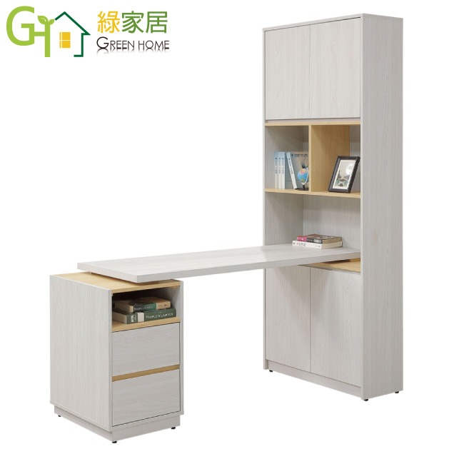 【綠家居】安卡蘭5尺可伸縮四門二抽書桌&書櫃組合   木紋雙色系+安心材質製造,使用放心+搭配居家更便利,採用防蛀木心板+防潮耐磨底座+五金滑軌結構等安心材質製造 ,外層採用防潮耐磨噴漆處理搭配採用開門櫃+二抽屜+可伸縮桌面板+內&外開放層格等收納空間設計,全由專人配送到家,專業安心服務,替你省下更多時間!