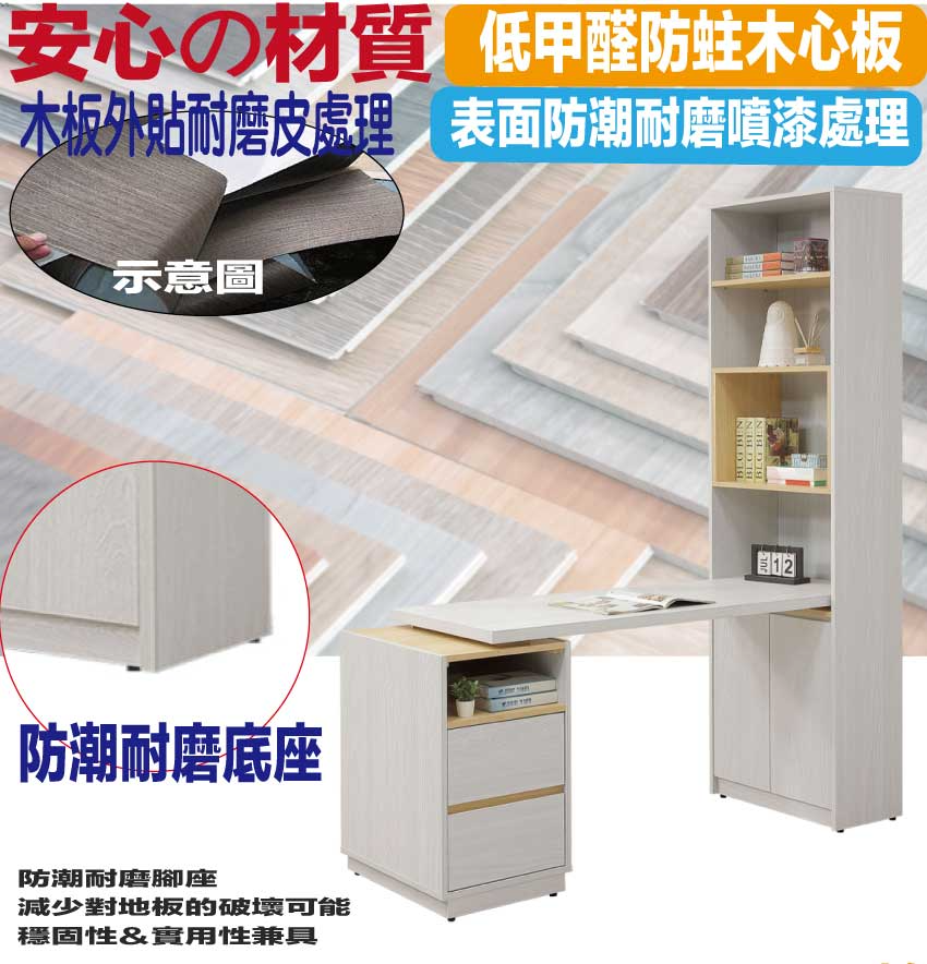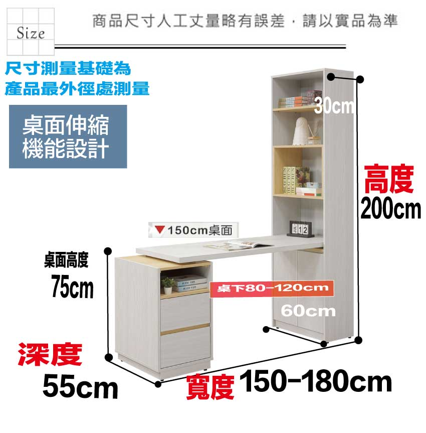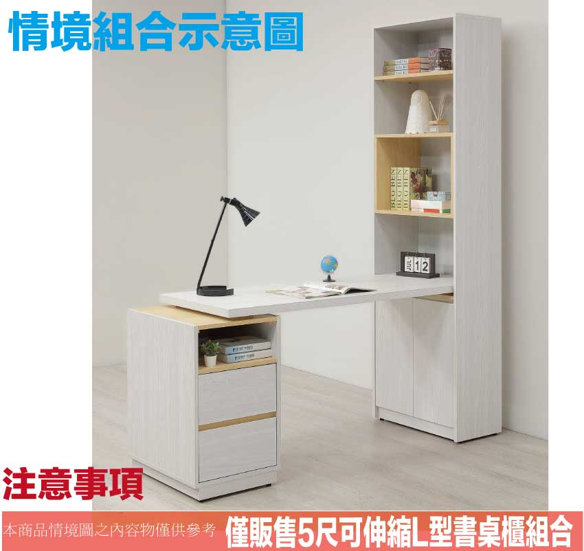 - ◆產品名稱:【綠家居】安卡蘭5尺可伸縮二門二抽書桌&書櫃組合