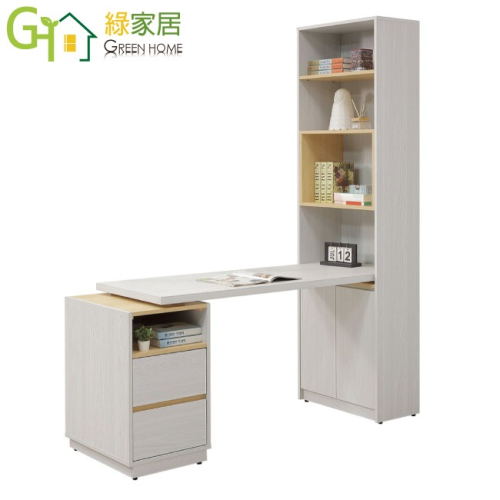 【綠家居】安卡蘭5尺可伸縮二門二抽書桌&書櫃組合 木紋雙色系+安心材質製造,使用放心+搭配居家更便利,採用防蛀木心板+防潮耐磨底座+五金滑軌結構等安心材質製造 ,外層採用防潮耐磨噴漆處理搭配採用開門櫃+二抽屜+可伸縮桌面板+內&外開放層格等收納空間設計,全由專人配送到家,專業安心服務,替你省下更多時間!