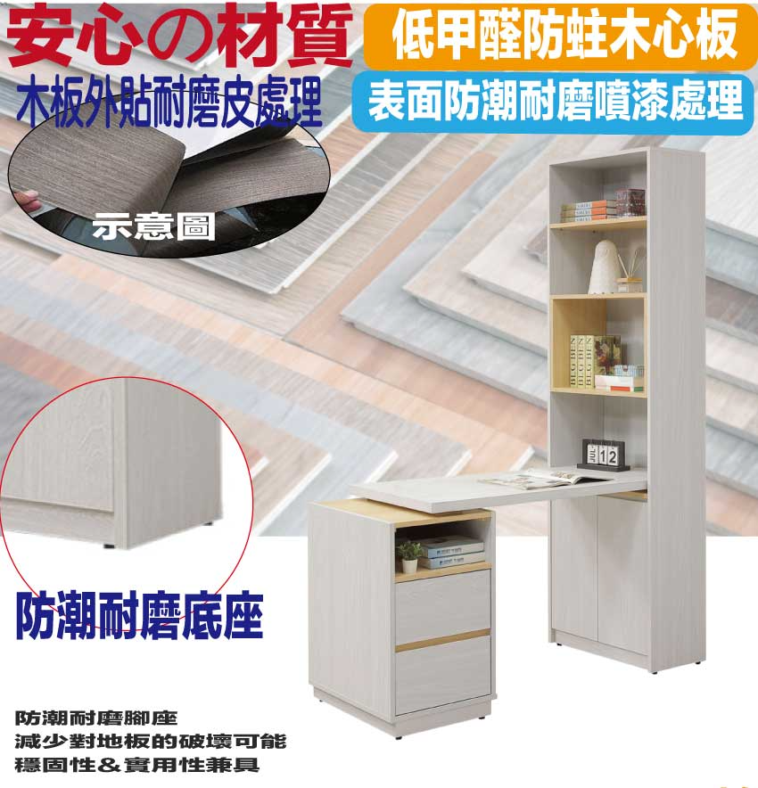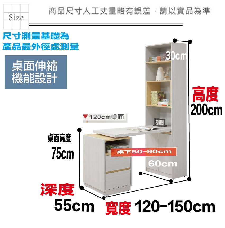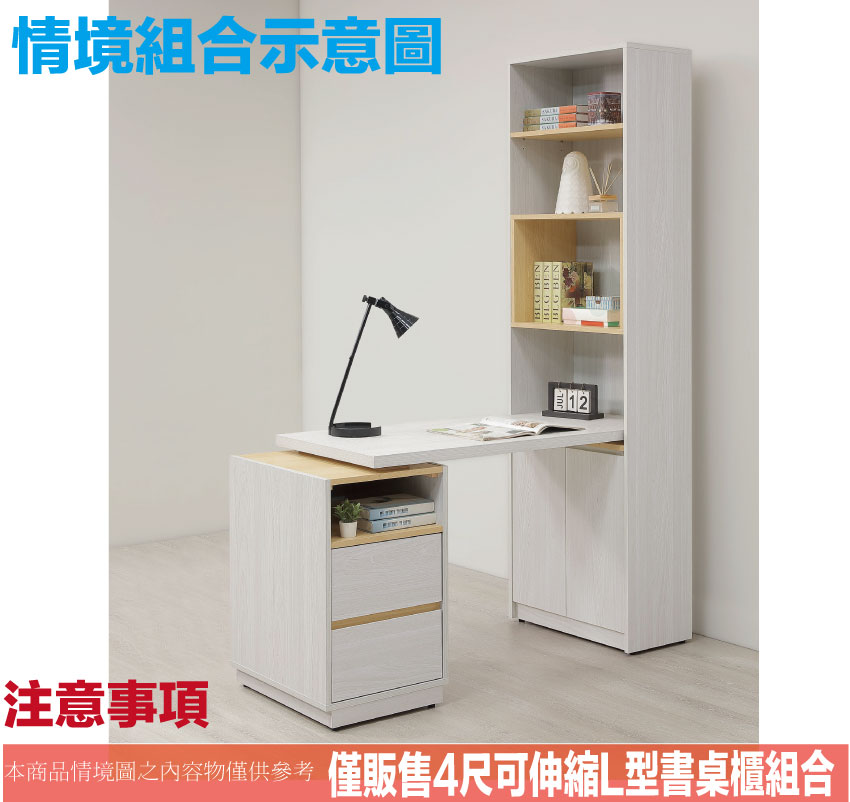 - ◆產品名稱:【綠家居】安卡蘭4尺可伸縮二門二抽書桌&書櫃組合