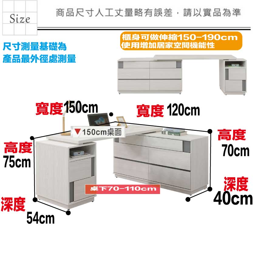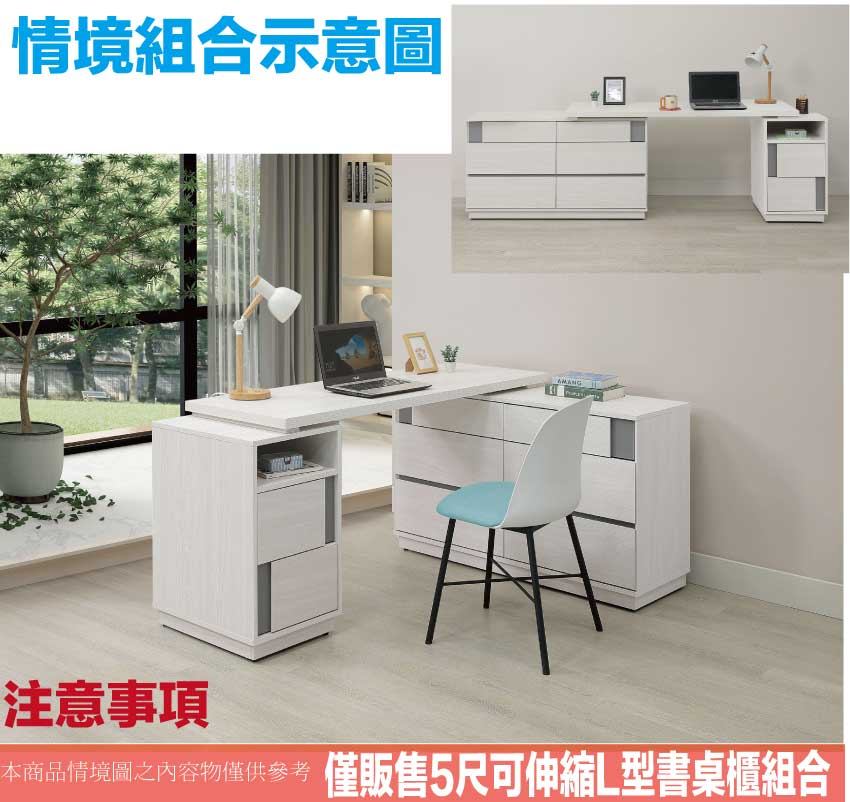 - ◆產品名稱:【綠家居】維斯5尺可伸縮變化八抽書桌組合