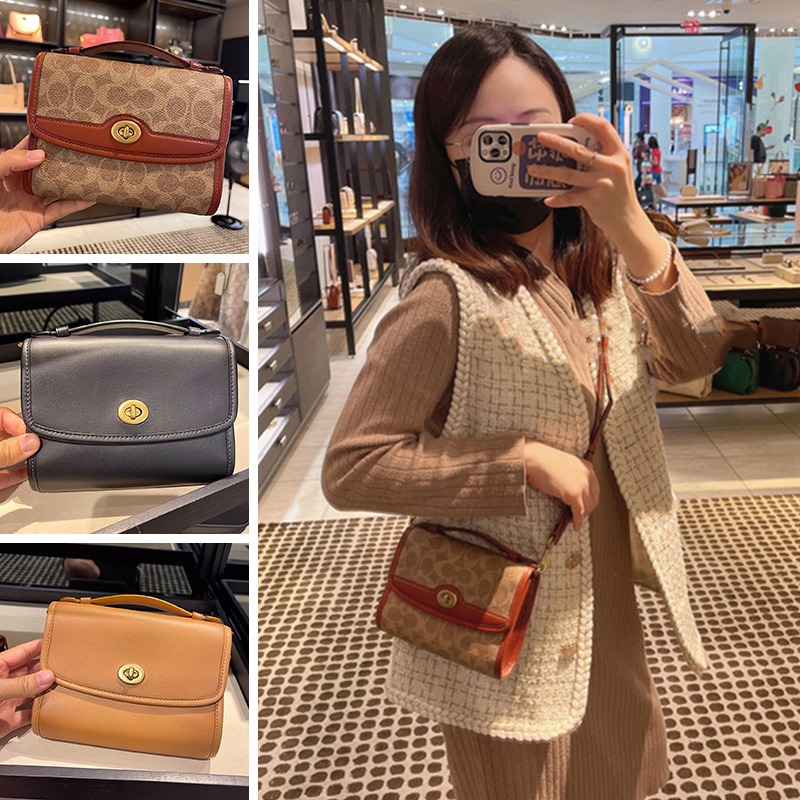 台灣美媽代購 COACH 蔻馳 包包 斜挎包 單肩包 斜背包 郵差包 手提包 翻蓋旋轉扣 復古時尚單肩斜跨小方包