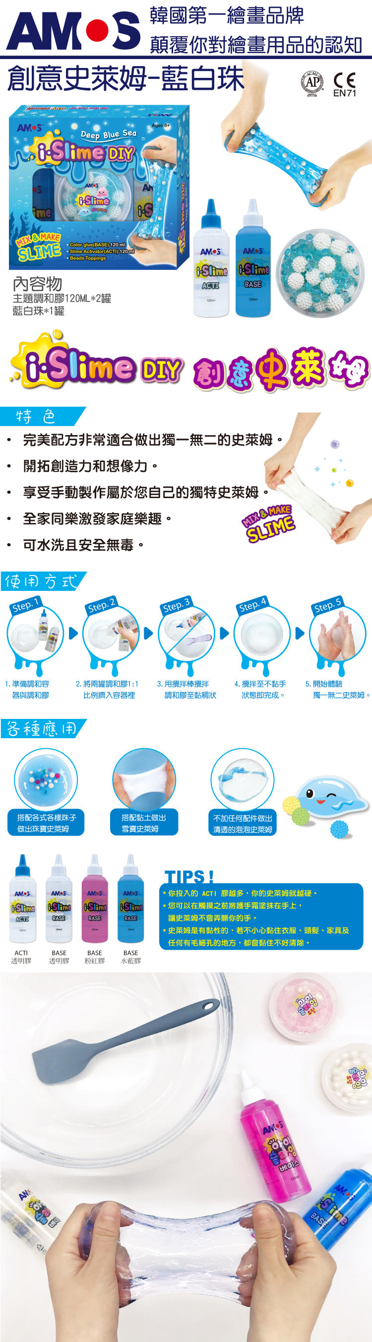 韓國AMOS 創意史萊姆-藍白亮珠款