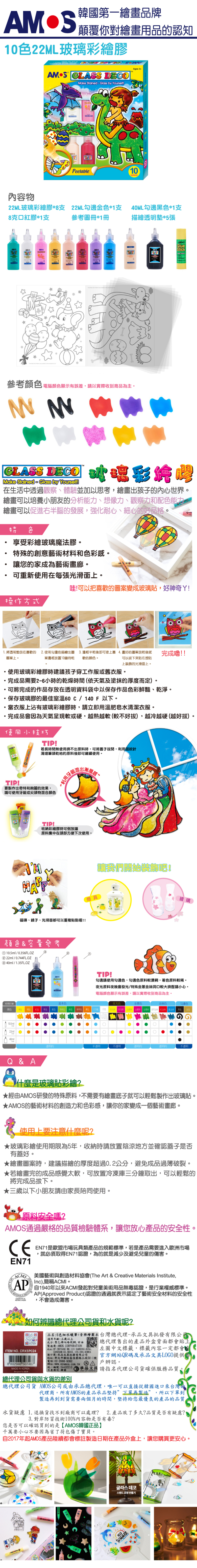 韓國AMOS 10色22ML玻璃彩繪膠