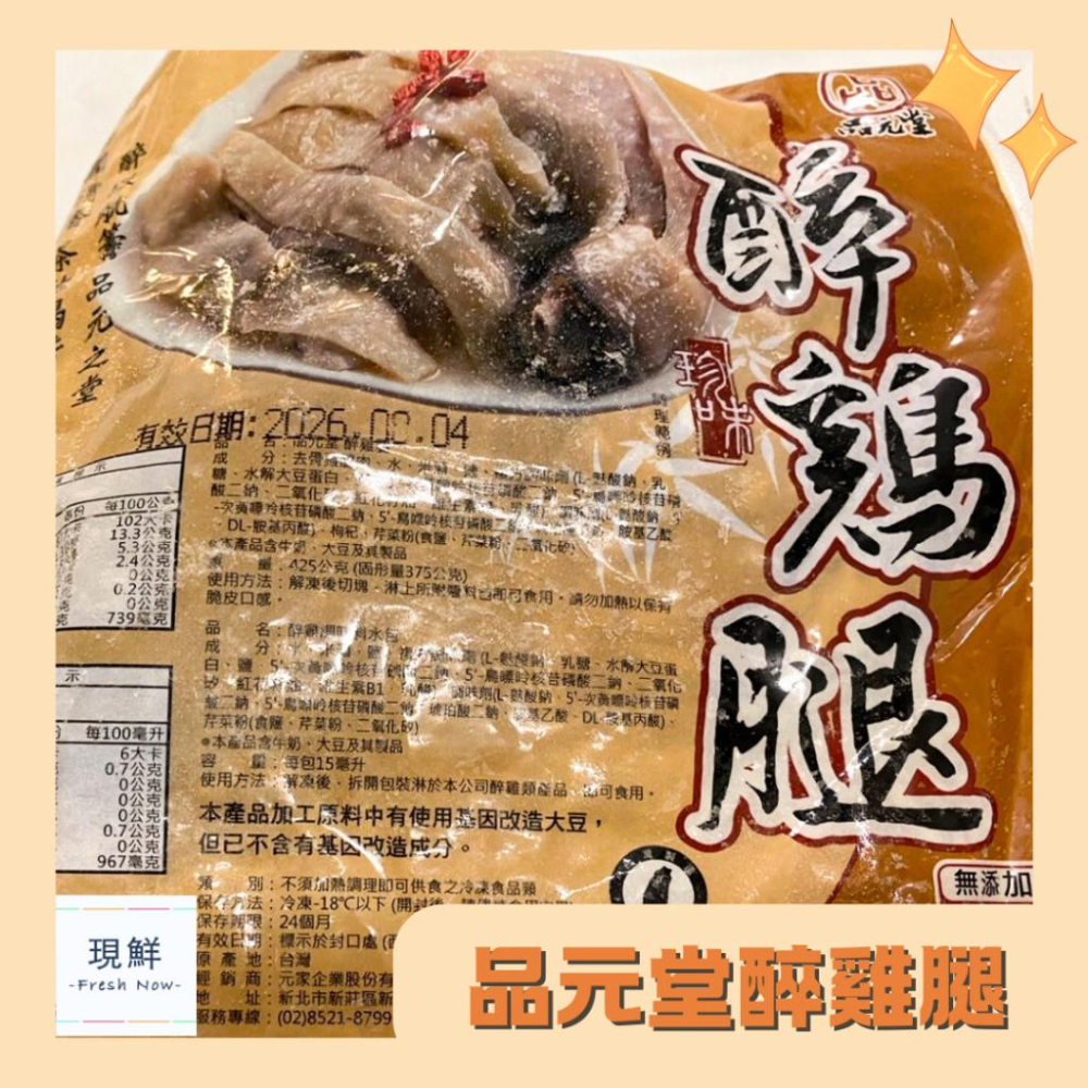 品名:品元堂-霸王醉雞腿 原產地:台灣 商品重量:375g ± 5%/包 保存期限:依包裝標示為主 保存方式:冷凍-18度C以下,請勿重複解凍 物流方式:冷凍 建議解凍方式:最佳解凍方式是置於冰箱冷藏區約12小時左右慢慢解凍,或是置於常溫下6~8小時解凍。 成份:嚴選去骨土雞腿肉、米酒、調味料、枸杞 散發香氣逼人的醉雞腿~皮脆肉嫩,表層那閃亮亮的油光~勾起視覺上的享受,瞧那光滑的雞肉纖維~絲絲扣人心弦!口感棉密滑嫩、不柴不乾,剔透的湯汁,帶著甜味與酒香,如此完美的組合,徹底滿足挑剔的味蕾! 注意注意:全家低溫冷凍配送有重量限制,10公斤內才能配送,10公斤以上請再下一張訂單。 🔆 注意事項:產品生產、儲存、運送均採低溫處理,商品請勿反覆解凍食用 🔆 訂購說明:此為低溫冷凍商品唷❗️❗️ 🔆 生鮮食材不論結帳選用哪一種物流,一律全程低溫冷凍宅配寄送,請安心下單!(圖片僅供參考,實際以收到品項為主) *有任何商品問題都可以私訊聊聊