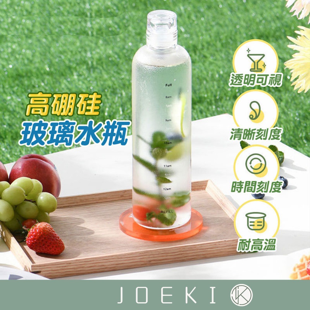 玻璃水瓶 ins風 簡約 時間刻度 玻璃杯 環保水壺 水杯 水壺 水瓶 隨行杯 透明水壺【CC0361】