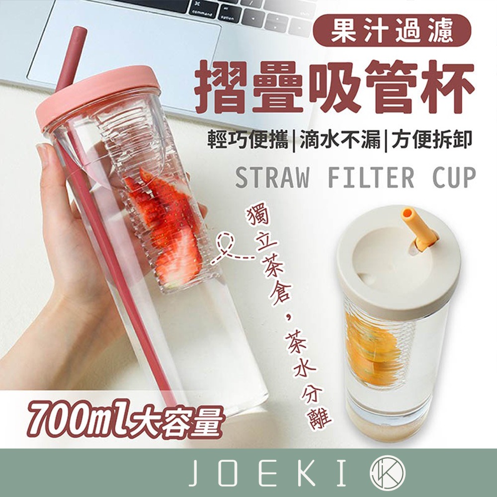 果汁過濾摺疊吸管杯 700ml 水壺 吸管杯 水瓶 過濾杯 大容量 果汁杯 茶隔杯 自帶吸管【CC0300】