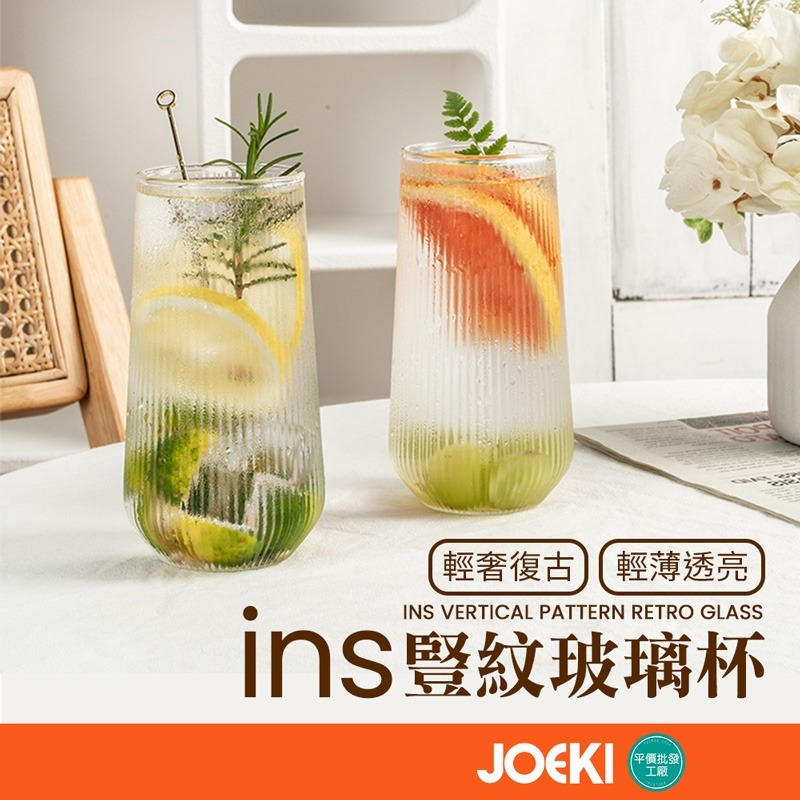 ins豎紋玻璃杯 條紋玻璃杯 耐熱 耐冷 高款玻璃杯 水杯 飲料杯 咖啡杯 復古杯 輕奢玻璃杯 玻璃杯【CC0514】