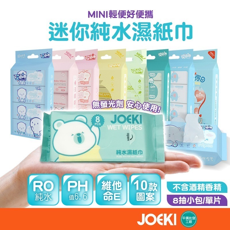 迷你濕紙巾 8抽 單片 純水濕紙巾 濕紙巾隨身包 小包濕紙巾 嬰兒濕紙巾 擦臉巾 濕式衛生紙巾 濕巾【WS0111】