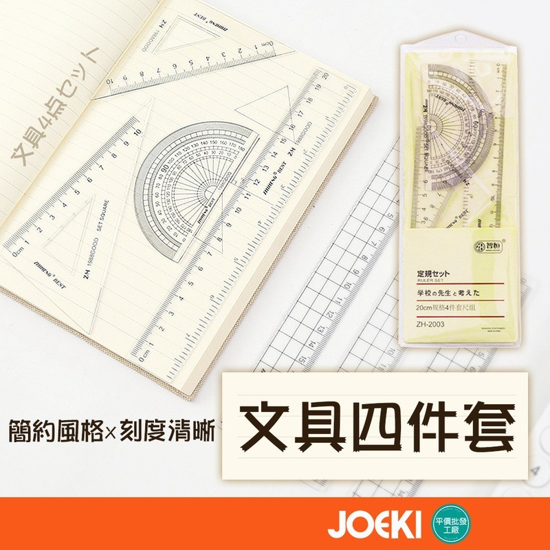 文具四件套 刻度清晰 無印風 三角板 量角器 直尺 角度尺 直尺套尺四件套 尺子 文具用品 辦公室文具【WJ0178】