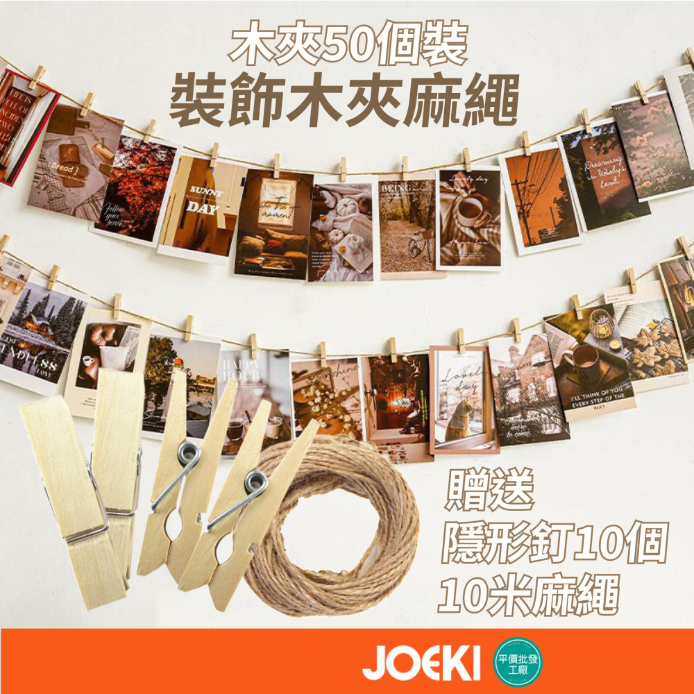 #裝飾木夾麻繩 #50入原木木夾 #木夾 #10米麻繩 #照片牆相片 #小夾子 #房間裝飾
