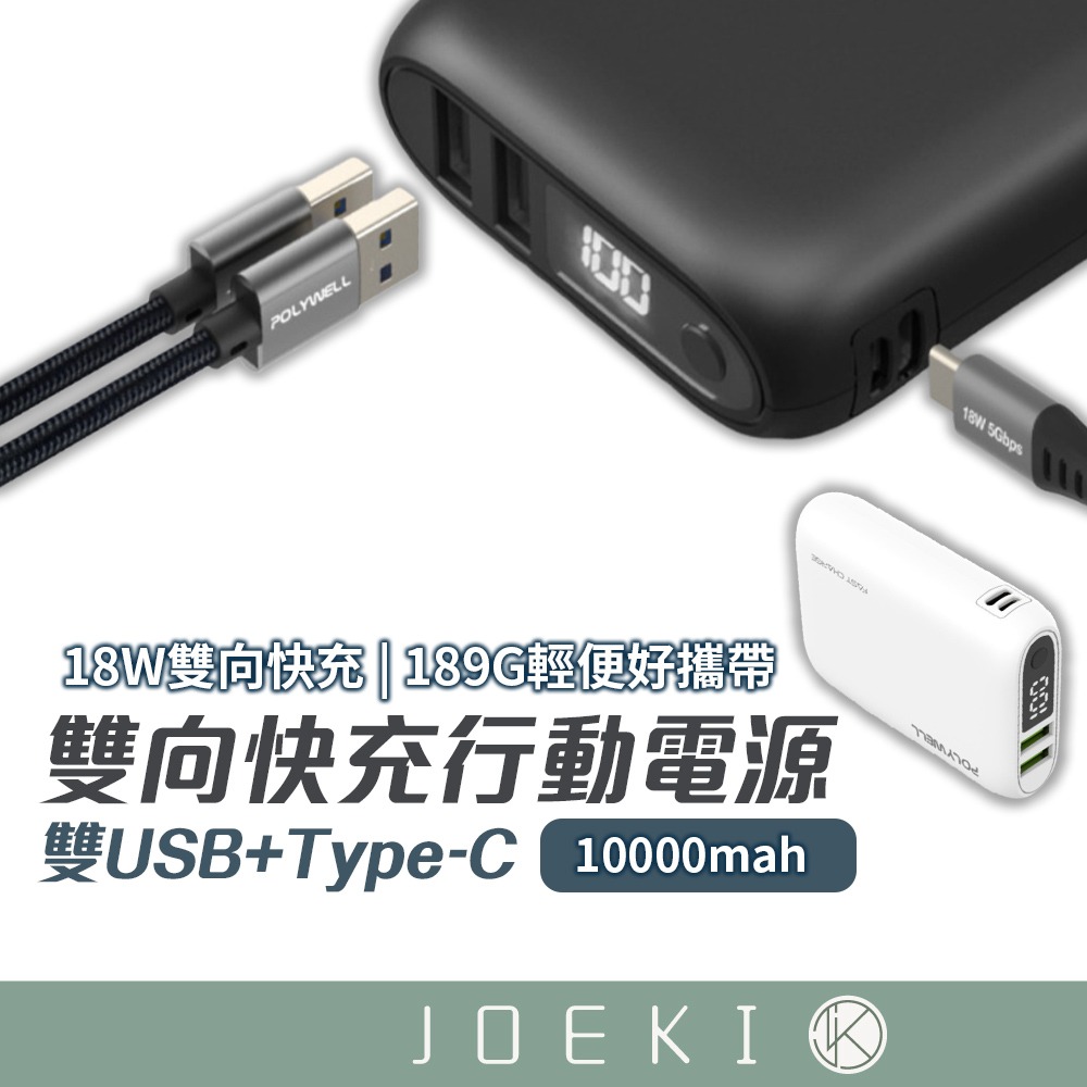 #雙向快充行動電源 #10000mAh #18W #雙USB #Type-C #寶利威爾 #POLYWELL