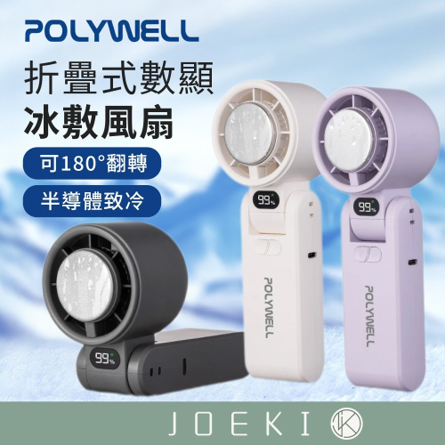 POLYWELL#折疊式數顯冰敷風扇#100段風速#半導體致冷#冷敷降溫#Type-C充電#寶利威爾#冰敷風扇