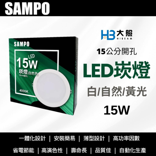 【SAMPO 聲寶】LED超薄崁燈 15W 15公分開孔 一體化設計/安裝簡易 晝光色/自然色/燈泡色