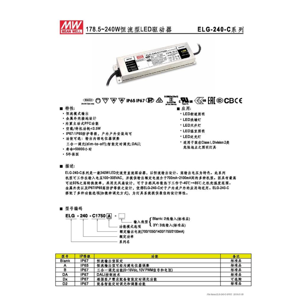 5年保固原裝新品 ELG-240-C1400 LED電源供應器 LED電源驅動 恆流1.4~1.5A 適用億光150W以上路燈 適用恆流1.5A照明燈具模塊