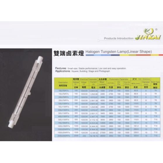 #鹵素燈管 #鹵素燈 #保溫燈 #鹵管 #300W #500W #鹵素#110V鹵管 感謝各位客戶的愛戴與支持 廣泛使用鹵素燈管 水電行批來賣都划得來 J118,兩端長度118 mm 每盒100只裝 110V/300W 220V/300W 110V/500W 220V/500W