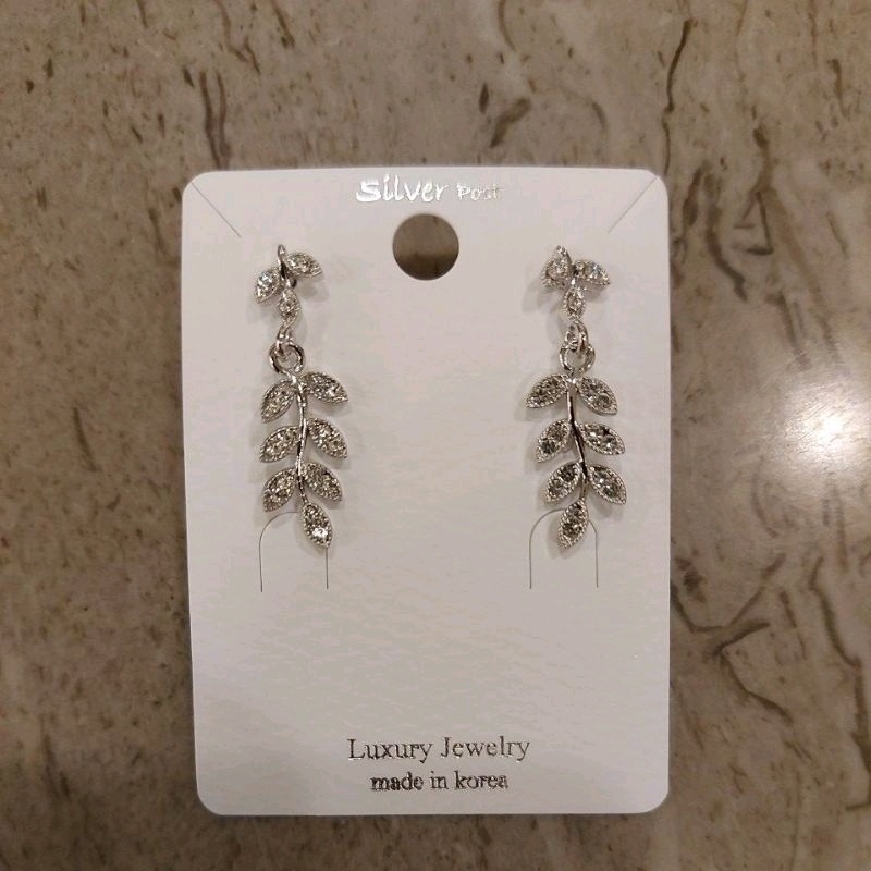 🌈垂墜葉片銀色針式耳環 Made in Korea 925銀針