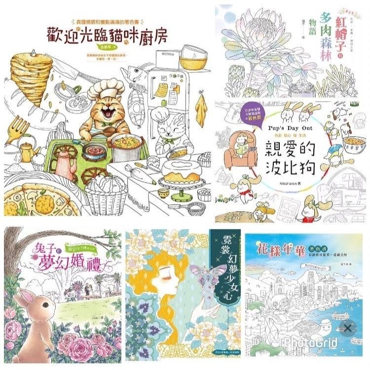 歡迎光臨貓咪廚房: 異國情調和餐點滿滿的著色書 每一幅精心繪製的插圖都等著你拿起畫筆造訪。 翻開書頁,穿梭一扇扇神奇的門,跟著貓咪走進不同國度的廚房。 法式料理、英式午茶、義式披薩、印度咖哩、日式料理、台灣小吃、港式茶點、美式漢堡等,烘焙麵包、甜點、巧克力、羅宋湯、沙威瑪、北非塔吉鍋、墨西哥塔可餅。 本書特色】 *是著色本也是繪本,上色完成後就是獨一無二的專屬私藏書。 *異國情調的各式廚房和餐食,享受充滿色香味的著色之旅。 *作者以溫馨、細膩的筆觸精心繪製,每一幅作品著色後都值得珍藏。 ISBN13 / 9789576868931 ************************************************************************************************************ 親愛的波比狗: 有美味食譜&數獨的著色書 一本有美味食譜&數獨遊戲的紓壓著色書! 偶爾,讓腦袋靜止吧!你可以在線條與色彩中發現純粹的快樂; 生活節奏放慢,只是隨意翻頁,隨興塗色,也很有樂趣。 你還可以玩玩數獨,或者,跟著食譜做做簡單料理,一個人的時光,多美 ISBN13 / 9789576868016 **************************************************************************************************************** 紅帽子的多肉森林物語 一本附有14款雙面造型彩繪卡的著色書 跟著小紅帽,在多肉迷人又迷你的世界裡,探險,在不思議旅程中停駐,留下色彩…… 一筆一畫,燦爛你的童話世界和奇思妙想。 ISBN13 / 9789576868054 ************************************************************************************************************************* 兔子的夢幻婚禮: 婚宴伴手禮著色書 偶爾,讓腦袋靜止吧!你可以在線條與色彩中發現純粹的快樂; 生活節奏放慢,只是隨意翻頁,隨興塗色,也很有樂趣。 走進一場婚禮, 有祝福,有幸福,有相守盟約…… 彩筆揮灑一幕幕夢幻, 見證永結同心,真愛永遠。 產品目錄 作者序……2 夢幻婚禮,從選購色鉛筆開始!……3 試試不同的筆觸吧!……3 色鉛筆上色法……5 兔子上色示範……6 花朵上色示範……8 小物上色示範……9 小花童上色示範……10 植物上色示範……12 *從選購色鉛筆到介紹握筆、筆觸效果與著色技巧一一解說。 *步驟圖解,多款彩繪出層次與立體感的上色示範。 ************************************************************************* 霓裳幻夢少女心: 異國風服飾與魔幻紋樣交織的著色書 【本書特色】 *內附6款華美人形與服飾。 *書中介紹了著色變化技巧、色彩搭配技巧,並提供多種配色參考,可以讓完成的作品有更豐富的色彩表現! *作者示範的臉部和眼睛著色技巧,可以讓人物更增添多種風情! 花樣年華 著色書 拾綴被遺忘的時光,彩繪逐漸消逝的懷舊事物…… 回到沒有手機的那些年,置身於花樣色彩之中, 細細回味懷舊的旋律,一同來享受那份單純的愛。 幾枝彩筆,隨興著色,讓回憶充滿繽紛色彩,讓心靈得到療癒! 拾綴被遺忘的時光,彩繪逐漸消逝的懷舊事物…… 回到沒有手機的那些年,置身於花樣色彩之中, 細細回味懷舊的旋律,一同來享受那份單純的愛。 幾枝彩筆,隨興著色,讓回憶充滿繽紛色彩,讓心靈得到療癒! 【本書特色】 *全手繪著色書,筆觸細膩、溫暖,每一幅作品都充滿生命力。 *展示多種配色技巧,以及不同彩筆的著色範例,0繪畫技巧也能完成精美、值得珍藏與回味的作品。