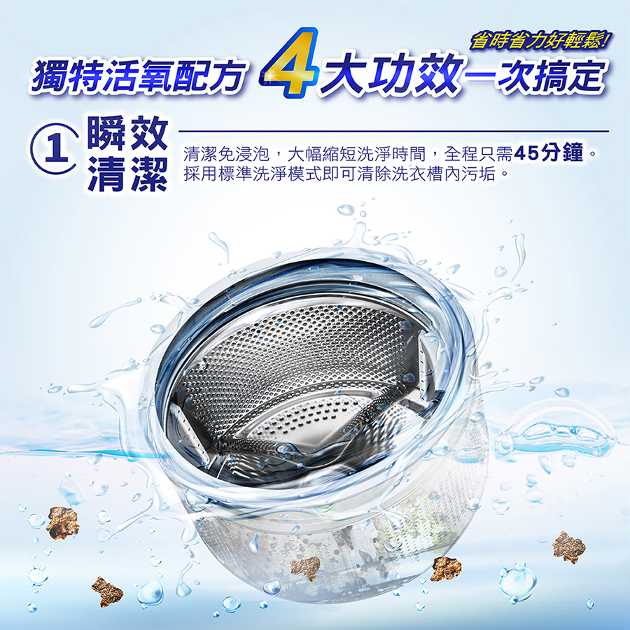 成分:活氧去垢鹽、Ag+銀離子、催化劑