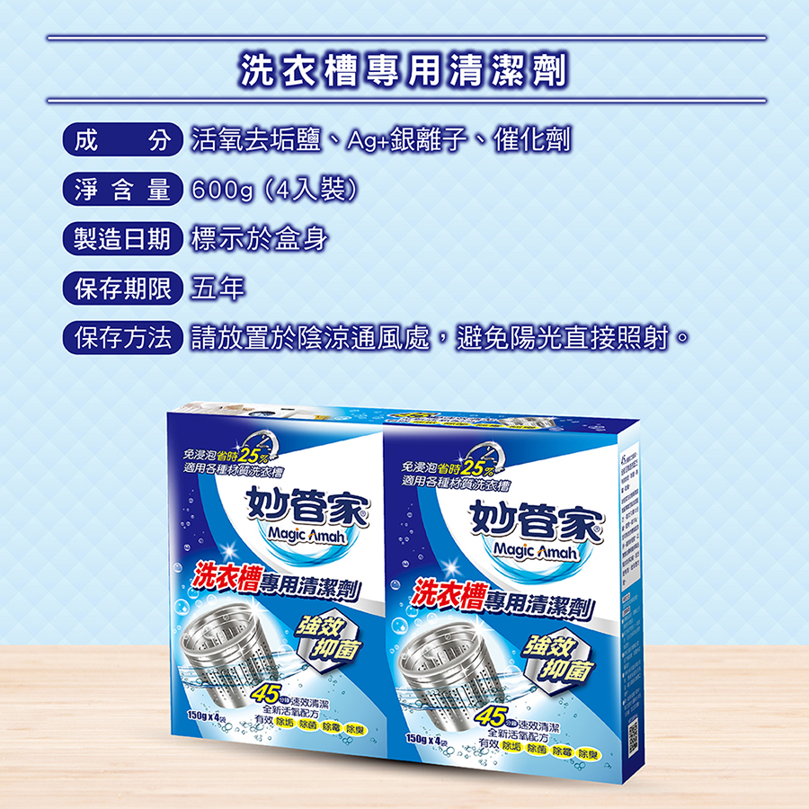 ⭐️採用專業活氧去垢配方,使用一袋150g,即可清洗洗衣槽。