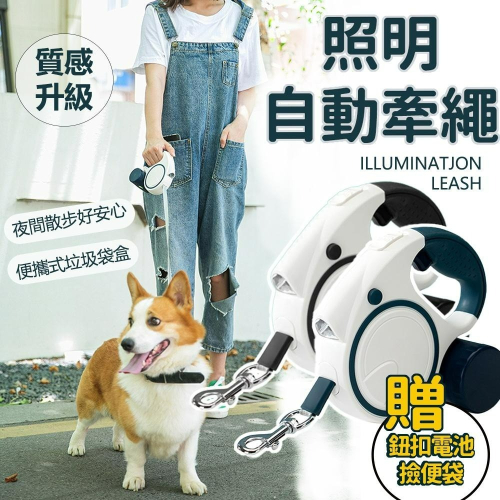 寵物牽繩 寵物自動牽繩 照明牽繩 伸縮牽繩 多功能牽繩 撿便袋 撿便盒