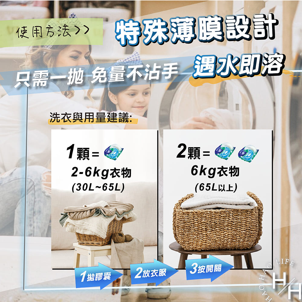★請將洗衣膠囊放入洗衣槽底部,以利膠囊外膜能快速溶解
