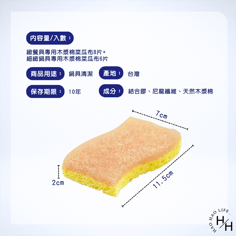 內容:細緻餐具專用木漿棉菜瓜布8片+細緻鍋具專用木漿棉菜瓜布6片成分結合膠、尼龍纖維、天然木漿棉