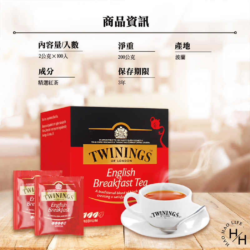 品名:Twinings 英倫早餐茶 2公克 X 100包