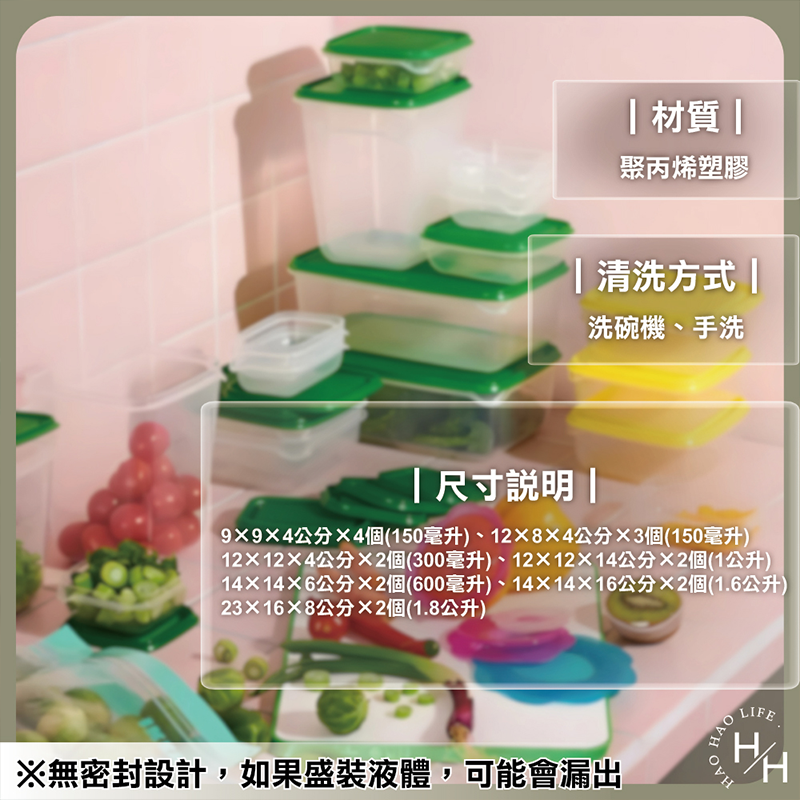 彩色含蓋的保鮮盒,備有多種尺寸以配合你收納需要,從小吃到午餐都可以放得下
