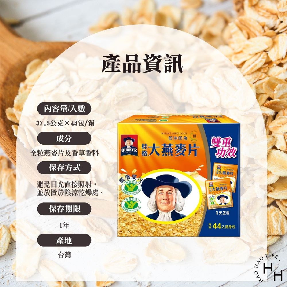 品名 : 桂格 即沖即食大燕麥片隨身包 37.5公克 X 44入