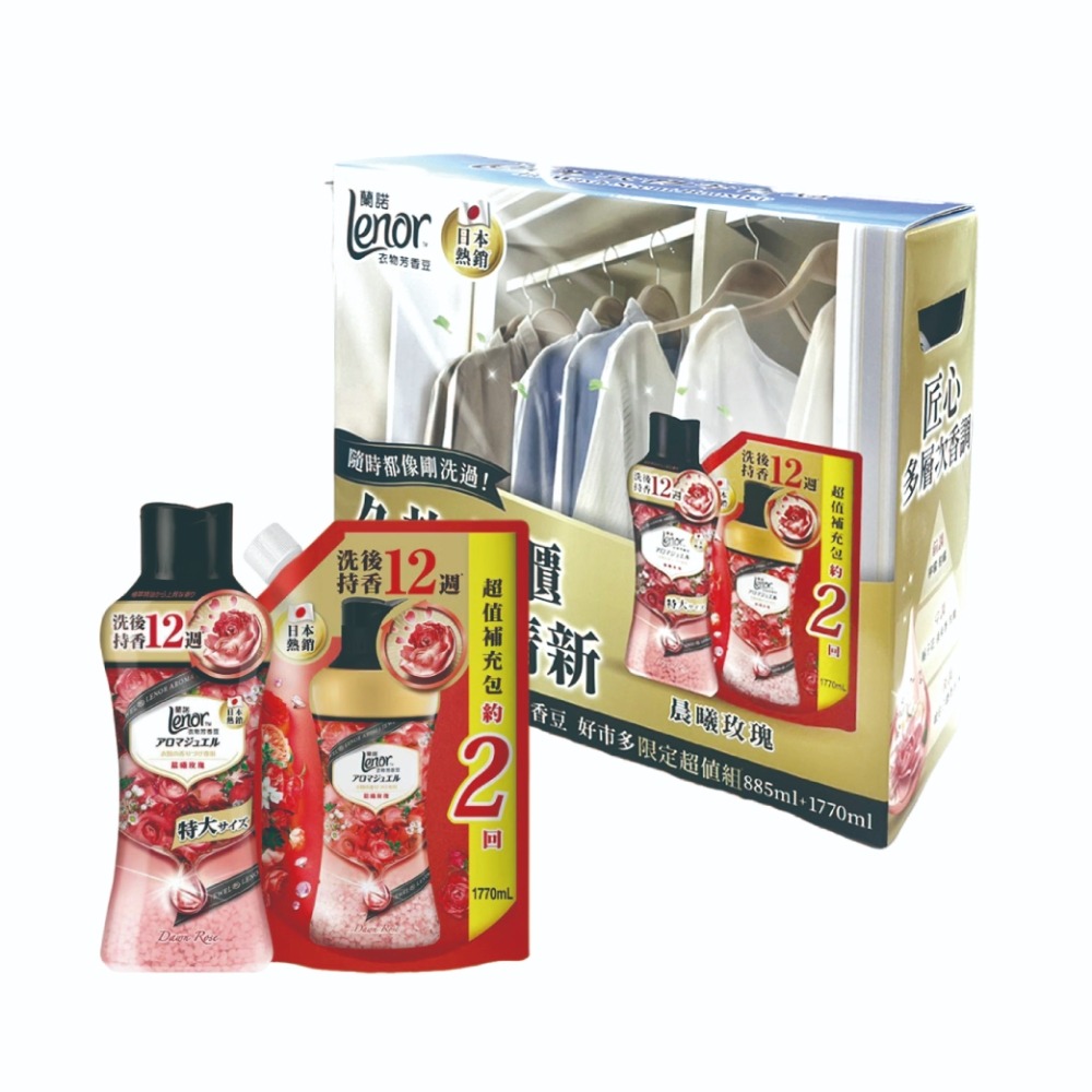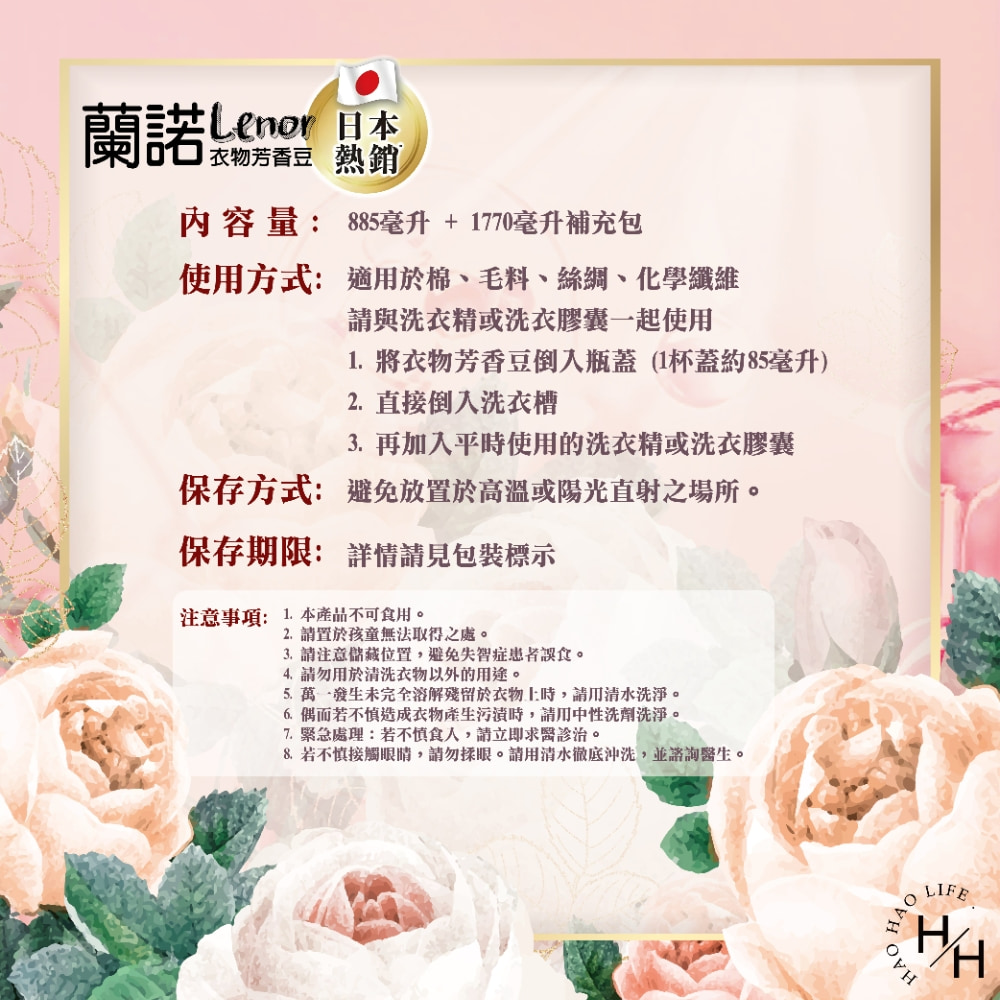 品名:蘭諾 衣物芳香豆 晨曦玫瑰 885毫升 + 1770毫升補充包香味晨曦玫瑰