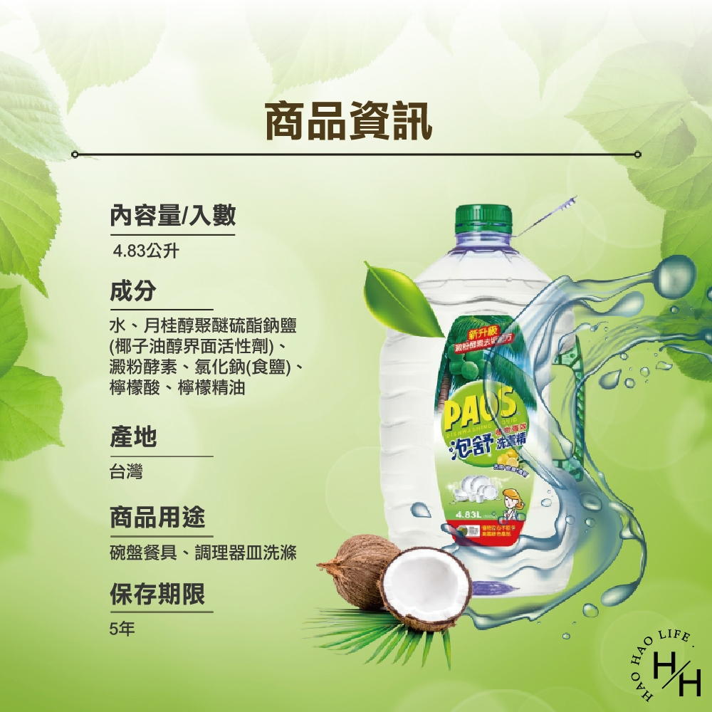 品名:泡舒植物強效洗潔精 4.83公升