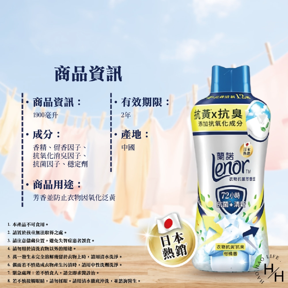 品名:蘭諾 衣物抗黃抗菌芳香豆 柑橘香 1900毫升