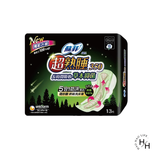 品名:蘇菲 超熟睡夜用草本衛生棉 35公分 13片 X 16包