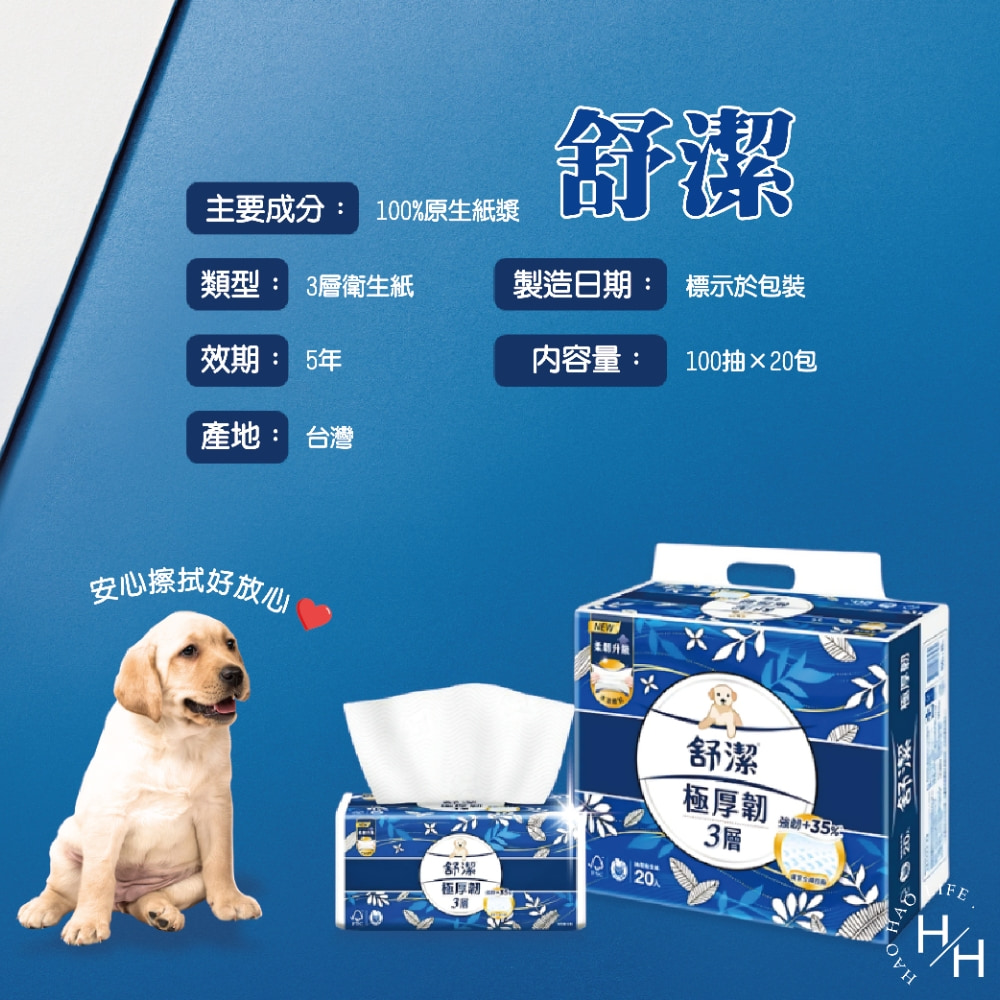 品名:【舒潔】3層極厚韌抽取衛生紙 (100抽x20包)
