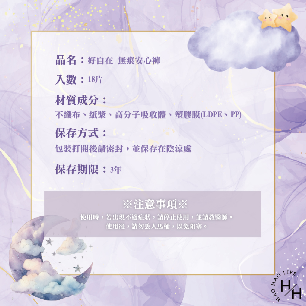 注意事項:請將使用過的安心褲捲起再丟棄於垃圾桶,請勿於馬桶沖棄。