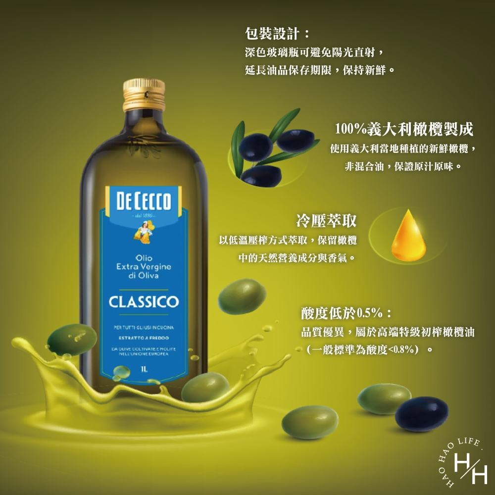 DE CECCO『得科』已為國際知名義大利麵市場領導品牌,深受全球專業廚師與美食愛好者的擁護。旗下所生產特級初榨橄欖油🫒,亦為眾多品牌之首選。獨特的清新橄欖油🫒芬芳,交錯豐富的蔬果芳香,不論冷食沾醬或是熱廚烹調,其穩定性油質及飽滿的清新芳香,為您的美食體驗更添滋味,是健康與美味兼具的不二選擇!