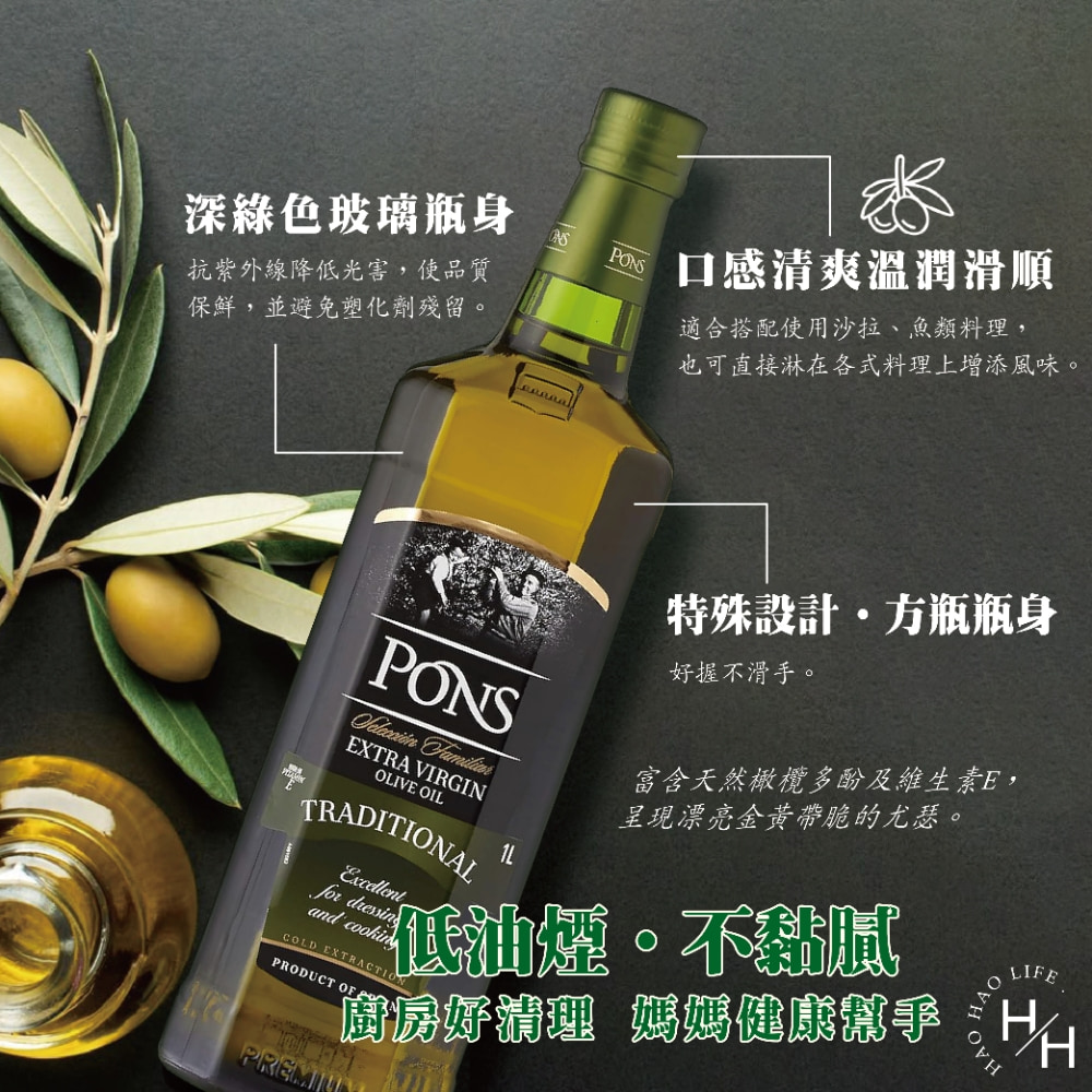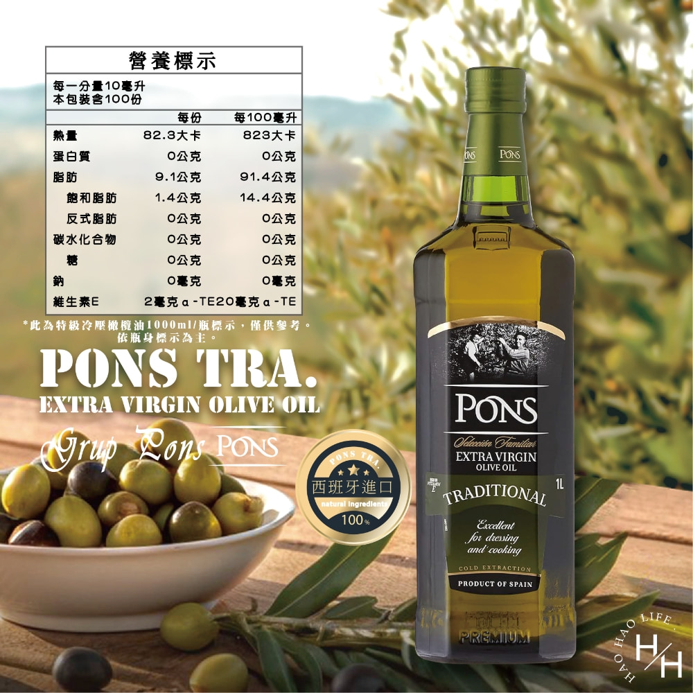 品名:聯馥PONS西班牙龐世特級冷壓橄欖油100% 1L