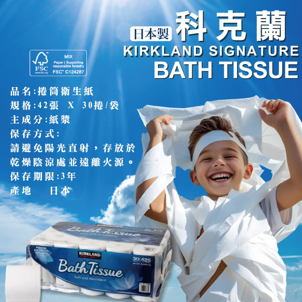 品名 Kirkland Signature 科克蘭 捲筒衛生紙 425張 X 30捲