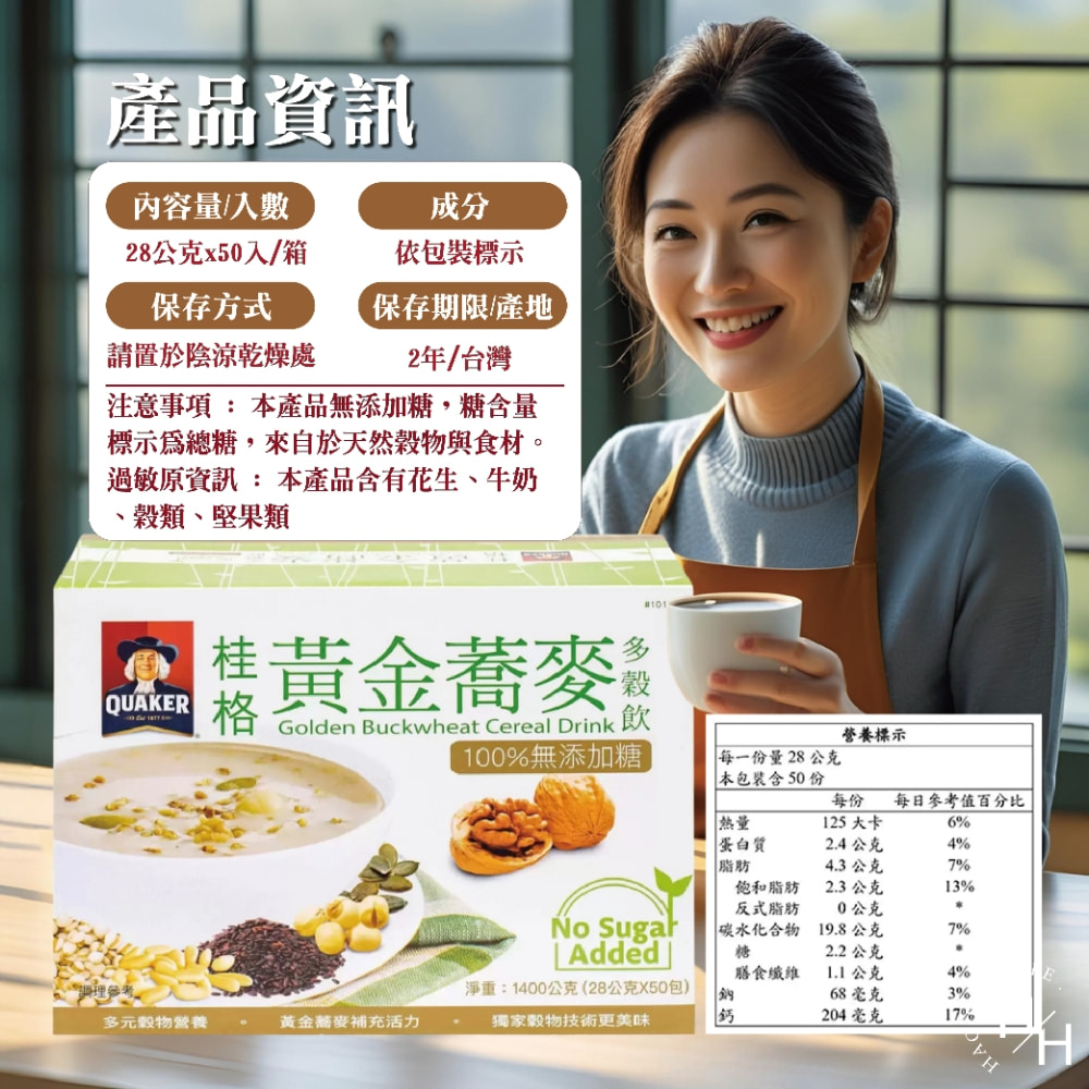 品名 : 桂格 無糖黃金蕎麥多穀飲 28公克 X 50入