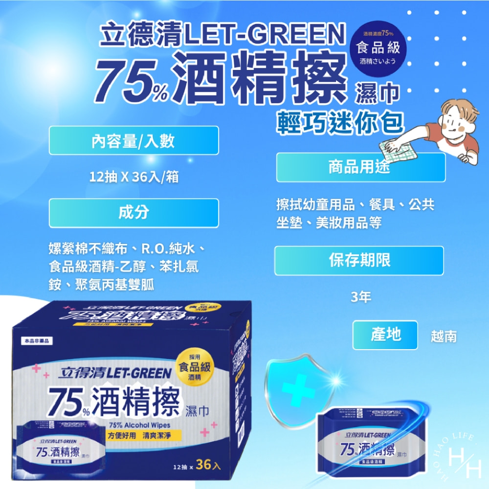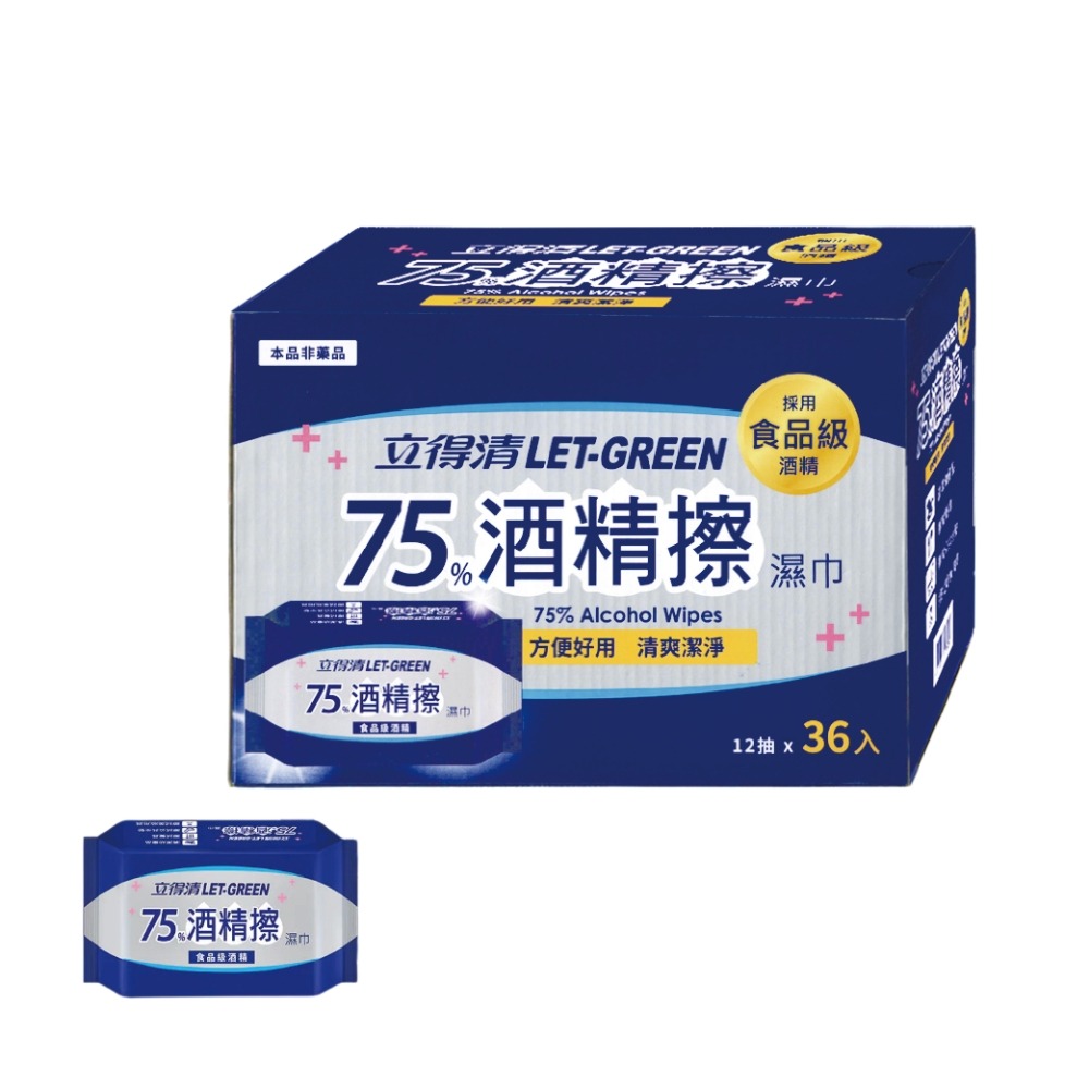 品名 : 立得清 75%酒精擦濕巾 12抽 X 36入